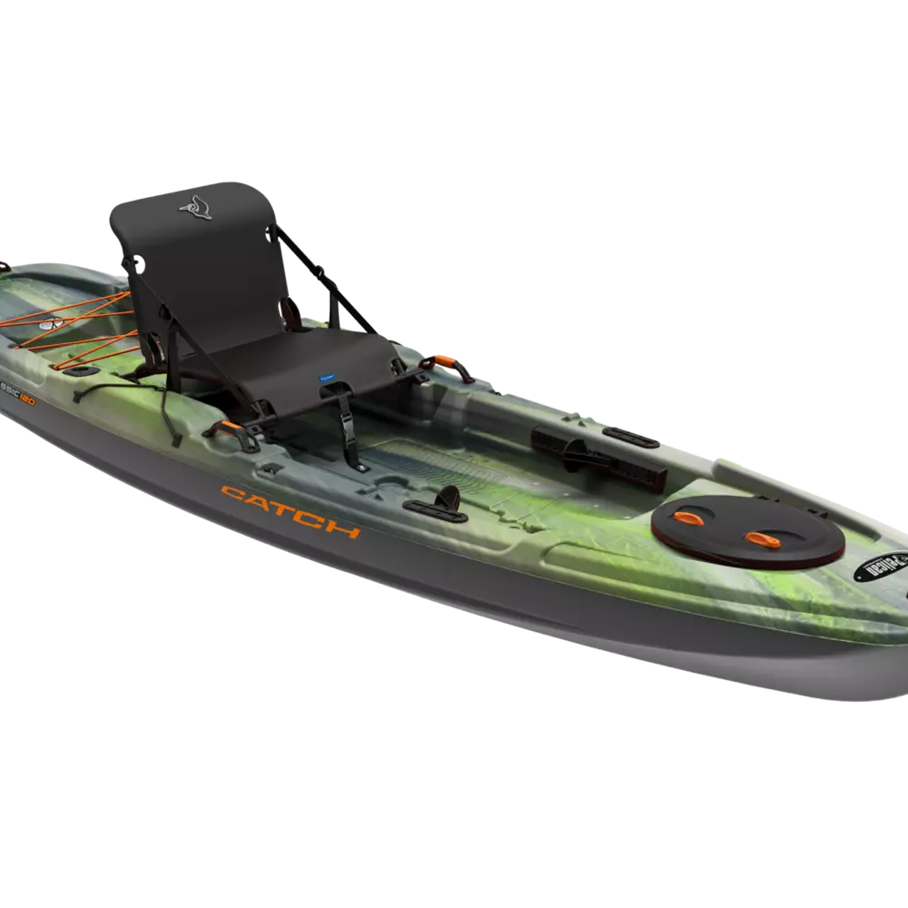 The Catch Classic 120 fishing kayak is designed for the more serious angler looking for versatility and comfort. Built on a tunnel hull, it offers great manoeuvrability and a wide, flat deck platform with a large standing area and room for fishing gear. It features adjustable footrests, an Ergocast G2™ seating system, a quick-lock hatch, and a storage platform with bungee cords to secure your gear. Made with our patented Ram-X™ premium material, this sit-on-top kayak will support you through many years of fun fishing adventures.